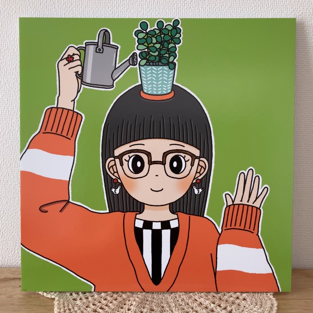 2024年の個展「のせるおんな展」にて展示した、作品パネル「のせるおんな 植木鉢」になります。 DMなど、メインビジュアルに使用した作品です。 1枚目:パネル画像 2枚目:パネルの厚み 3枚目:パネルイラストのサンプル サイズ:30×30㎝ パネルの厚み:約8mm 材質:発泡パネル・光沢紙