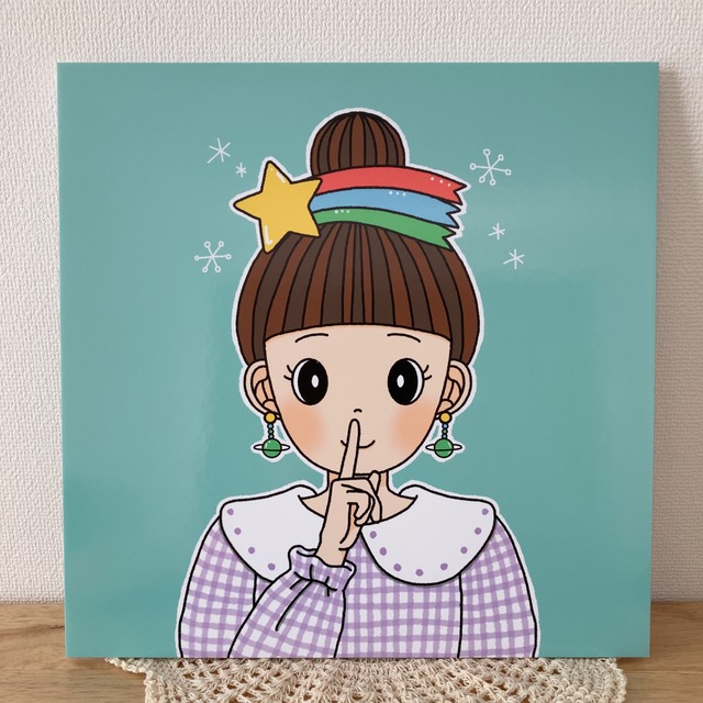 2024年の個展「のせるおんな展」にて展示した、作品パネル「のせるおんな 流れ星」になります。 1枚目:パネル画像 2枚目:パネルの厚み 3枚目:パネルイラストのサンプル サイズ:30×30㎝ パネルの厚み:約8mm 材質:発泡パネル・光沢紙