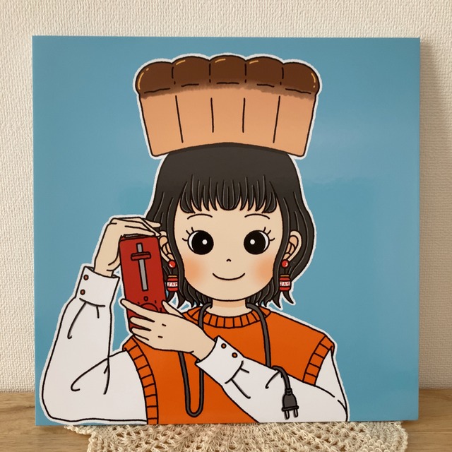 2024年の個展「のせるおんな展」にて展示した、作品パネル「のせるおんな 食パン」になります。 1枚目:パネル画像 2枚目:パネルの厚み 3枚目:パネルイラストのサンプル サイズ:30×30㎝ パネルの厚み:約8mm 材質:発泡パネル・光沢紙