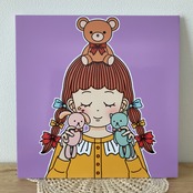 2024年の個展「のせるおんな展」にて展示した、作品パネル「のせるおんな ぬいぐるみ」になります。