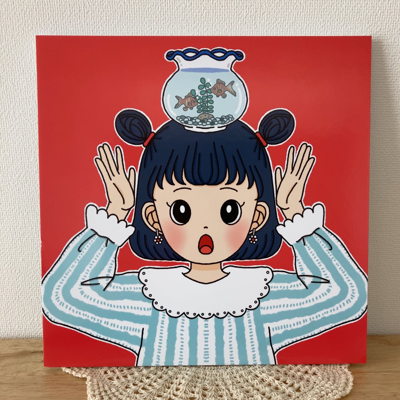 2024年の個展「のせるおんな展」にて展示した、作品パネル「のせるおんな 金魚鉢」になります。