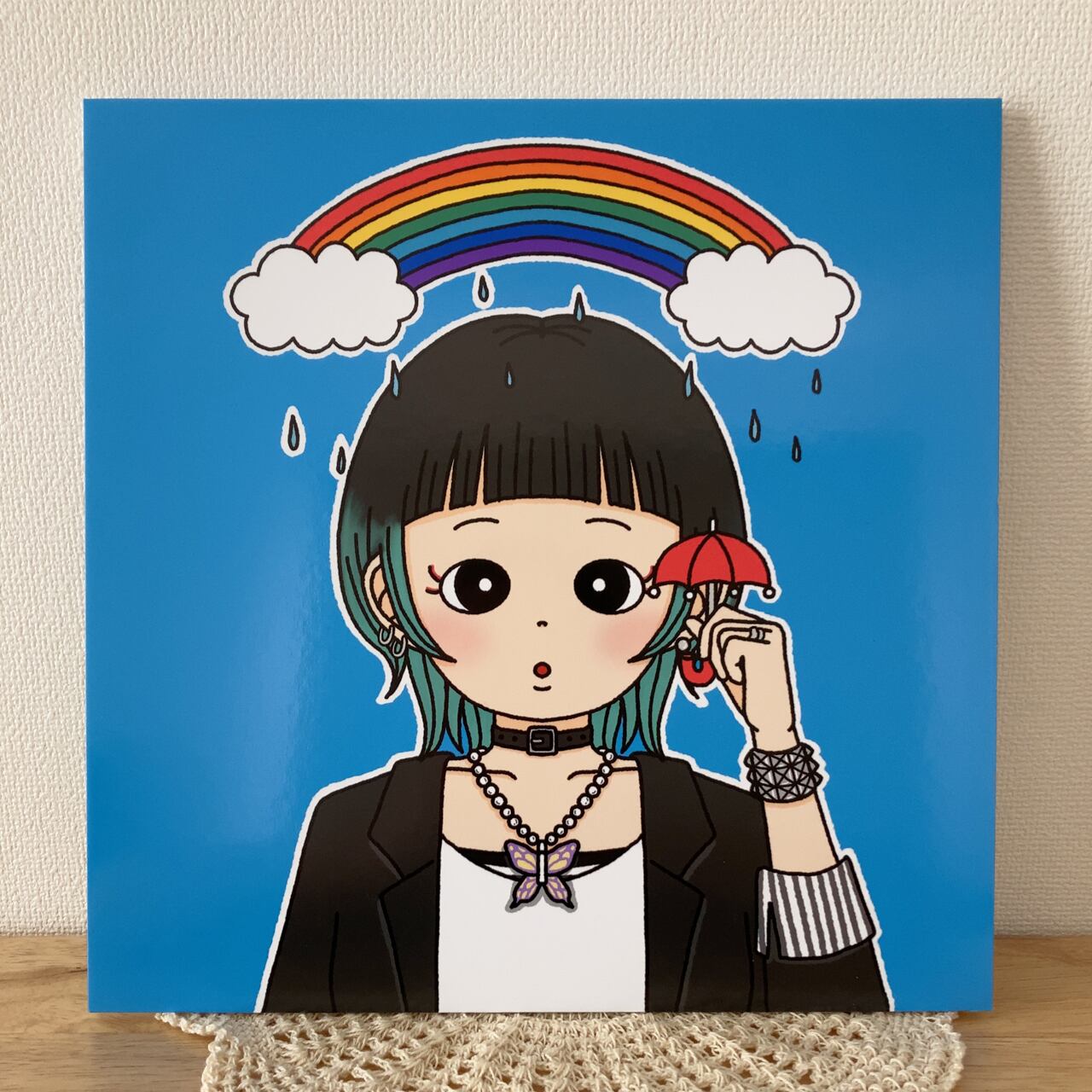 2024年の個展「のせるおんな展」にて展示した、作品パネル「のせるおんな 虹」になります。